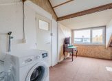 Vaste trap naar de voorzolder met dakkapel en veel bergruimte en CV-combiketel (2022).