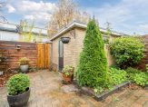 Achter het huis ligt een diepe tuin met een terras, ideaal om te ontspannen en van de zon te genieten. De tuin is op het noorden georiƫnteerd en beschikt over een ruime berging en een achterom.