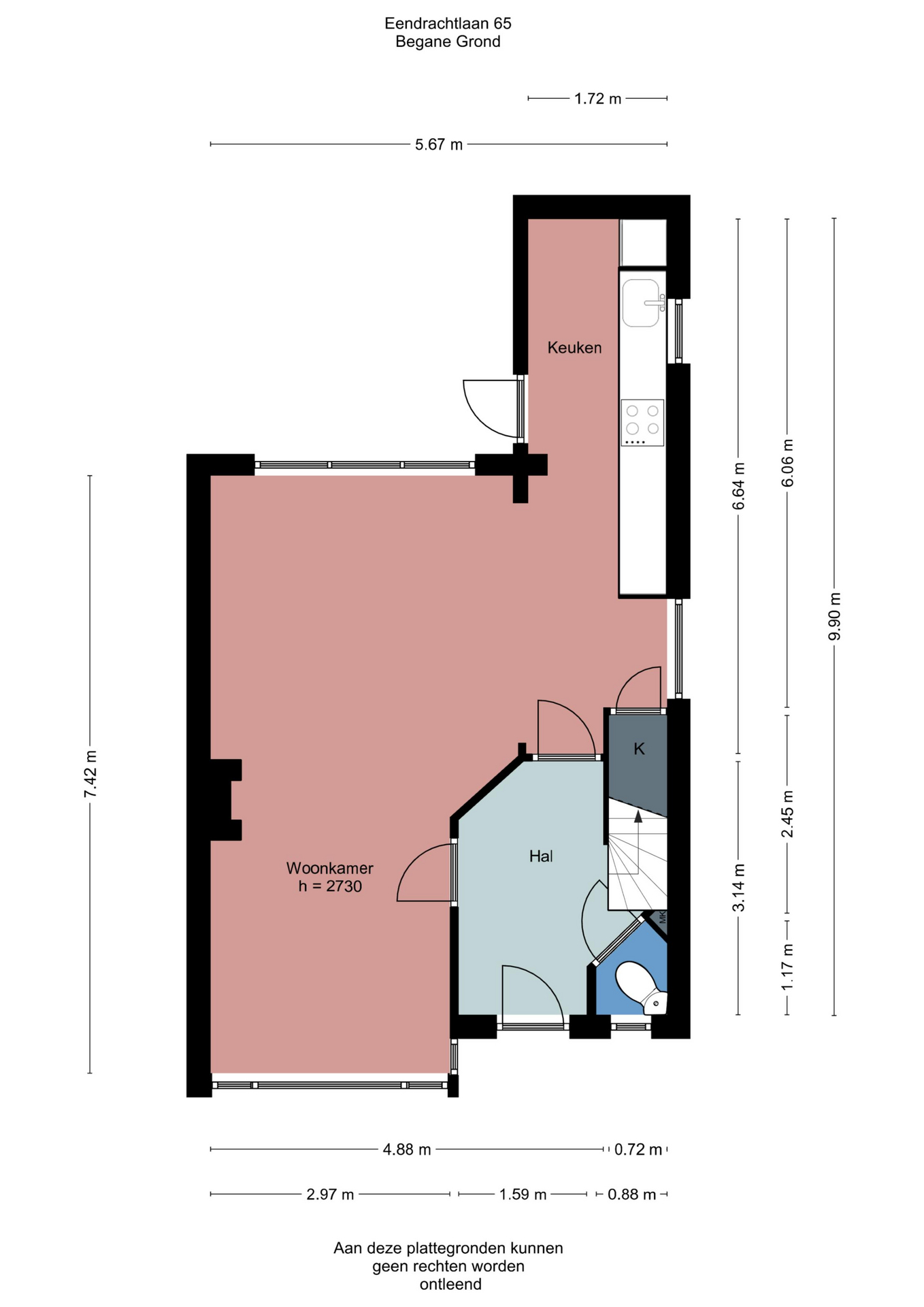 De oppervlakten en algeheel resultaat zijn opgebouwd conform de Branche Brede Meet Instructie (BBMI) afgeleid van de NEN2580. Aan de oppervlakten en inhoud(en) kunnen geen rechten worden ontleend.